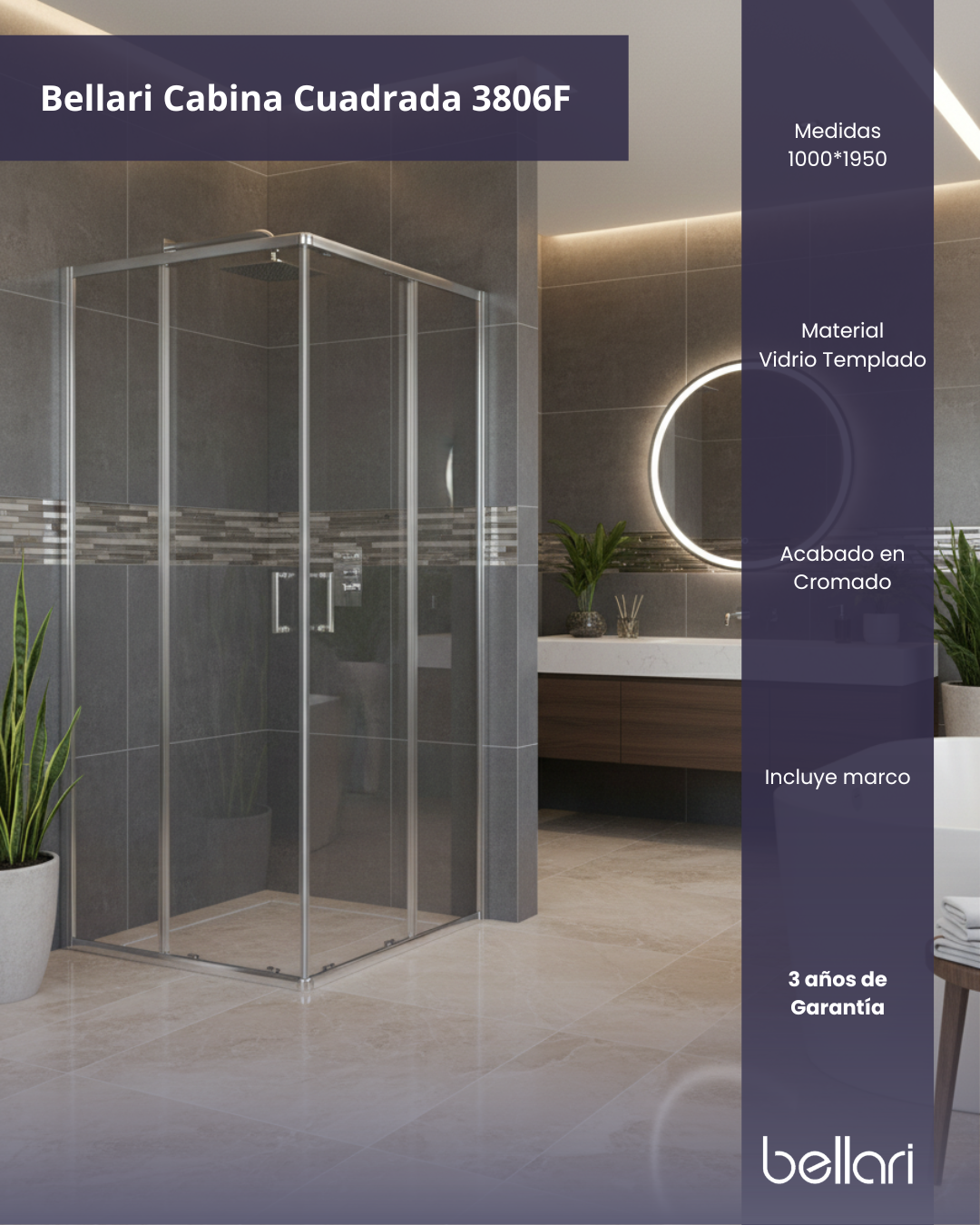 Bellari Cabina Cuadrada 90x90x195cm Cromado