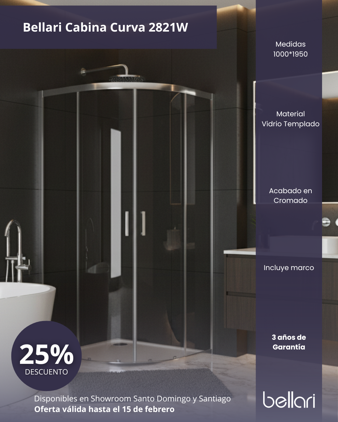 Bellari Cabina Curva Corredera 90x90x195cm Cromo