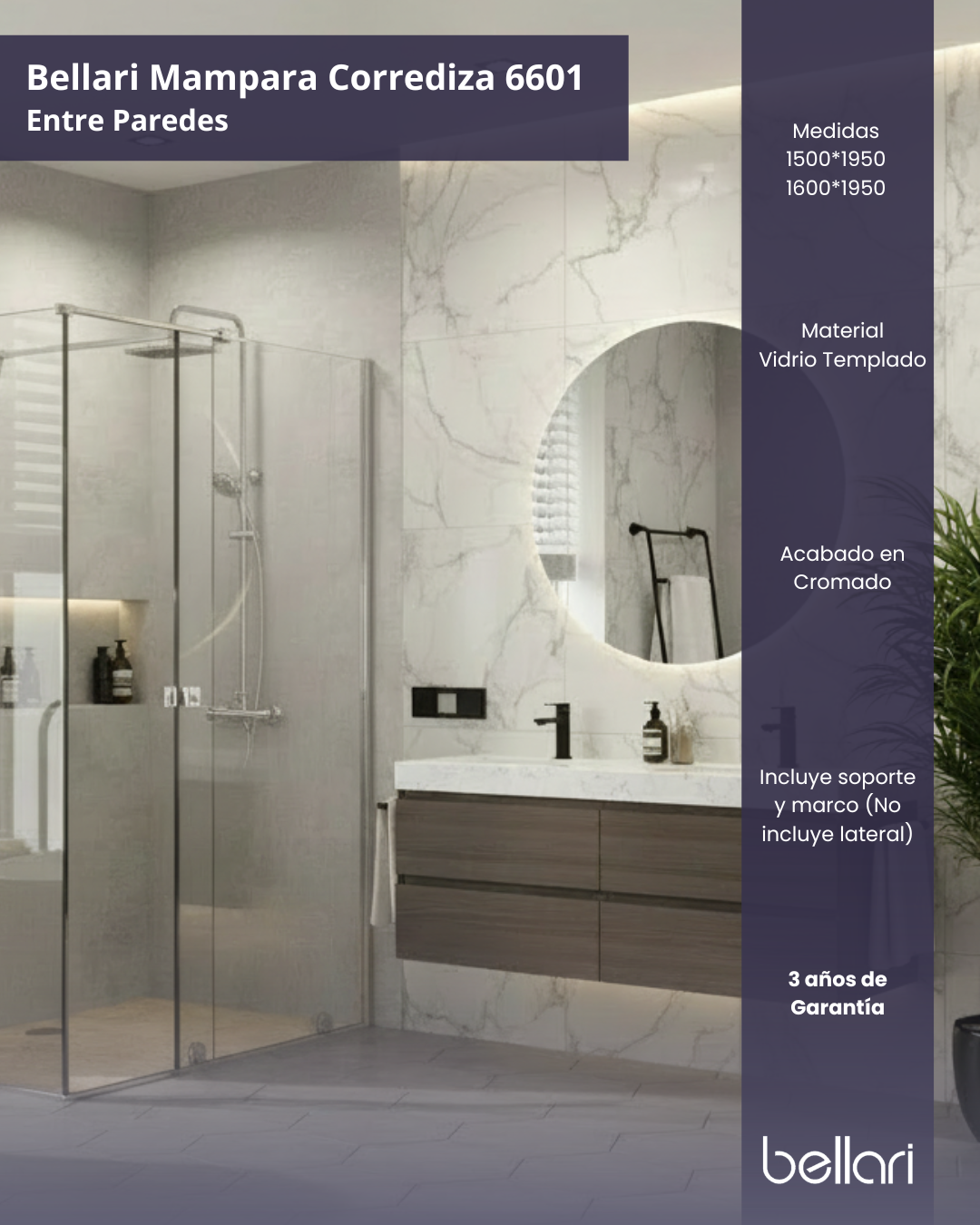 Bellari Mampara Corrediza Entre Paredes 150x195cm Cromado cantidad