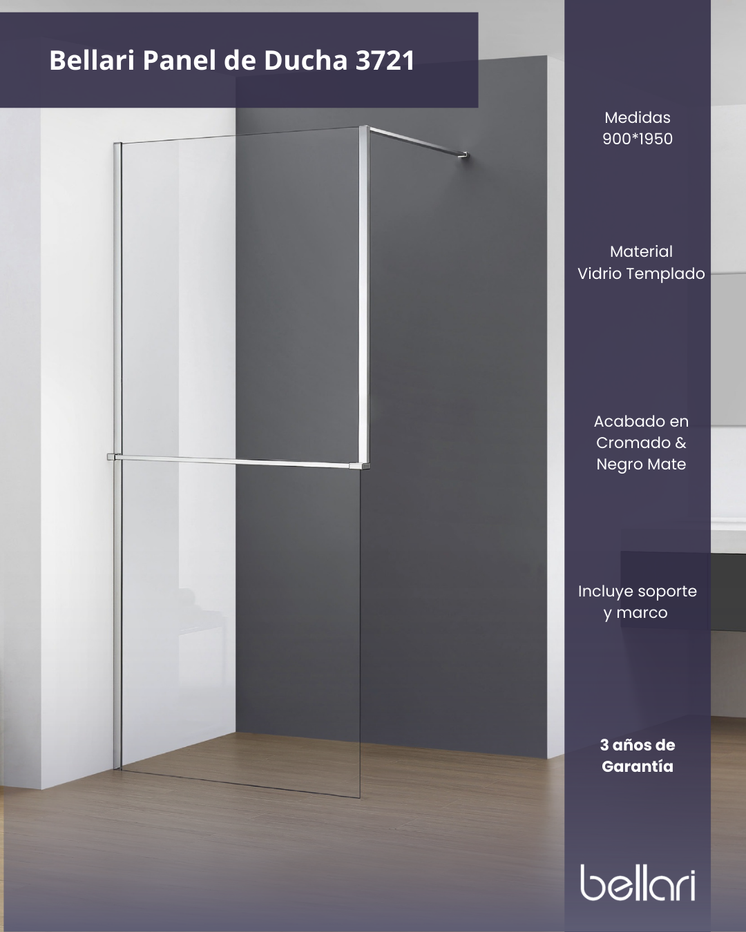 Bellari Panel de Ducha con Brazo de Fijación 90x195cm Cromado