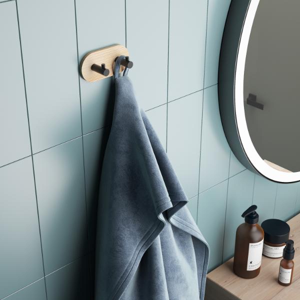 Percha Doble Ronda Natural/Negro Mate