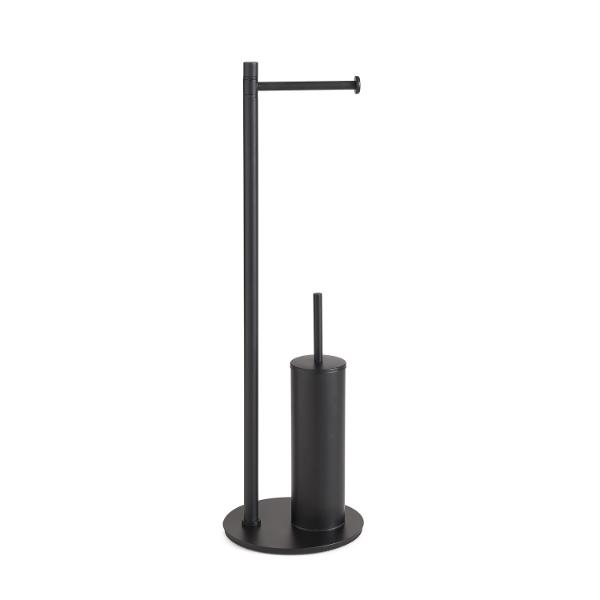 Columna de Pie Con Portarrollos y Escobillero Negro Mate