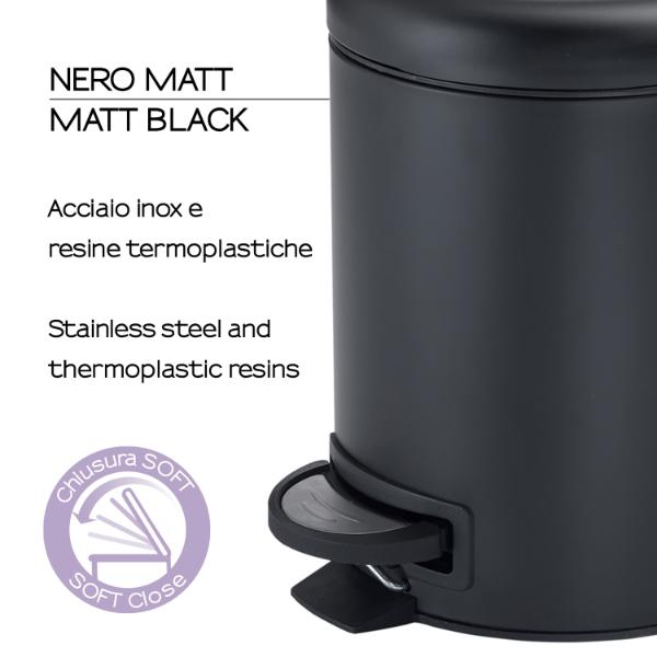 Gedy Potty Cubo de Pedal Cuadrado 5lt Negro Mate cantidad